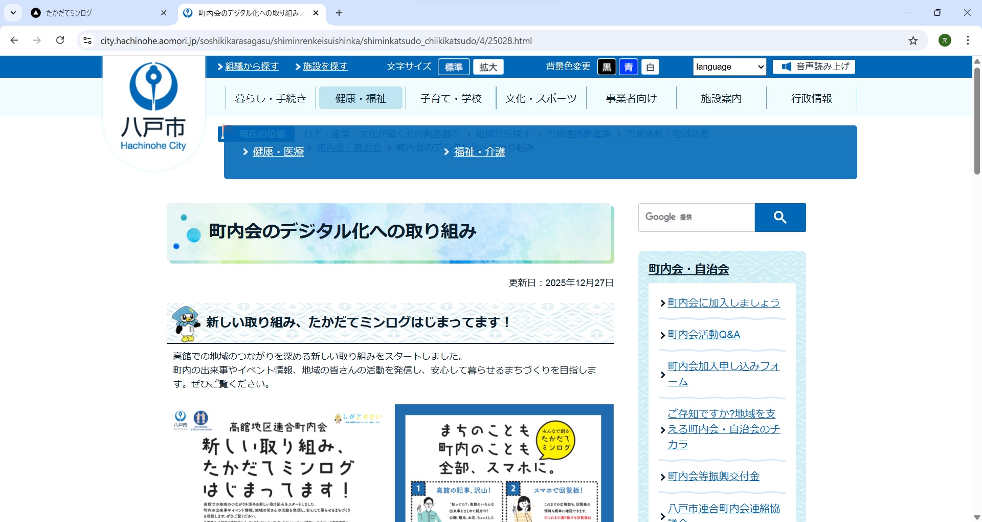 『町内会のデジタル化への取り組み』として八戸市のホームページに掲載されています。